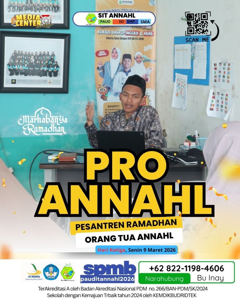 Jambi — SIT An-Nahl kembali menyelenggarakan kegiatan pembinaan bagi wali murid melalui program PRO AN-NAHL (Pesantren Ramadhan Orang Tua An-Nahl). Kegiatan ini menjadi salah satu agenda unggulan sekolah dalam mengisi bulan suci Ramadhan dengan aktivitas yang bermanfaat serta memperkuat peran orang tua dalam pendidikan anak.