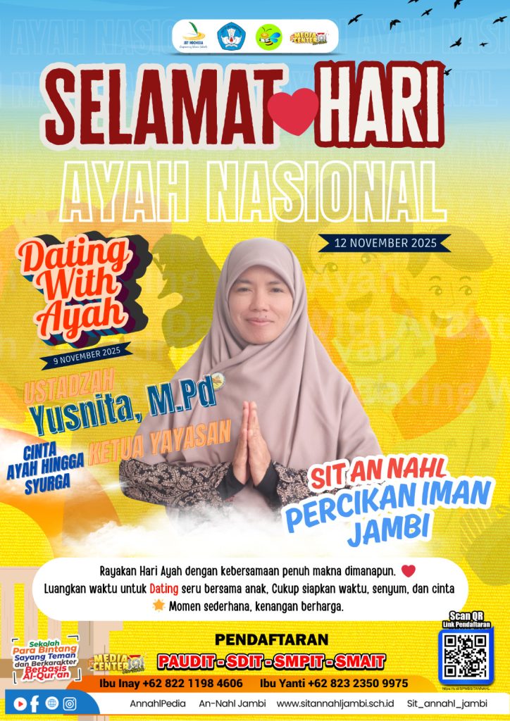 SIT An-Nahl Percikan Iman Jambi percaya bahwa fondasi terkuat seorang ananda adalah cinta tulus dari Ayahnya. Di momen spesial Hari Ayah Nasional (12 November 2025), An-Nahl mengajak seluruh keluarga Besar untuk mensukseskan agenda: Dating With Ayah. ✨ Kenangan Sederhana, Makna Read More …