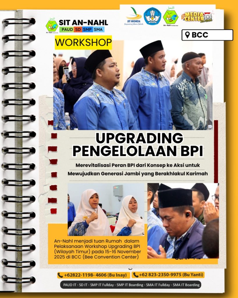 Alhamdulillah Dengan semangat kekeluargaan dan komitmen yang tulus pada pembentukan karakter, Sekolah Islam Terpadu (SIT) An-Nahl Jambi mengutus 10 org terpilih untuk mengikuti kegiatan Workshop Upgrading Pengelolaan BPI (Bimbingan Pendidikan Islam) bagi sekolah-sekolah yang di bagi menajdi 2 Wilayah Timur Read More …
