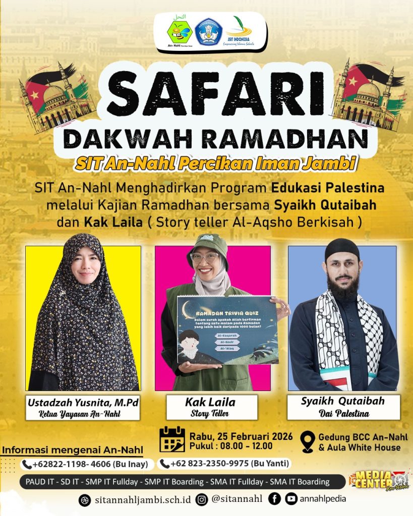 Semangat menyambut Ramadan 1447 H sudah mulai terasa di udara! Dengan hati yang penuh syukur dan semangat berbagi, SIT An-Nahl Percikan Iman Jambi menggelar agenda tahunan yang penuh makna: Aksi Sosial Sekolah An-Nahl (ASSA). Momentum Kebersamaan yang Nyata Pada hari Read More …