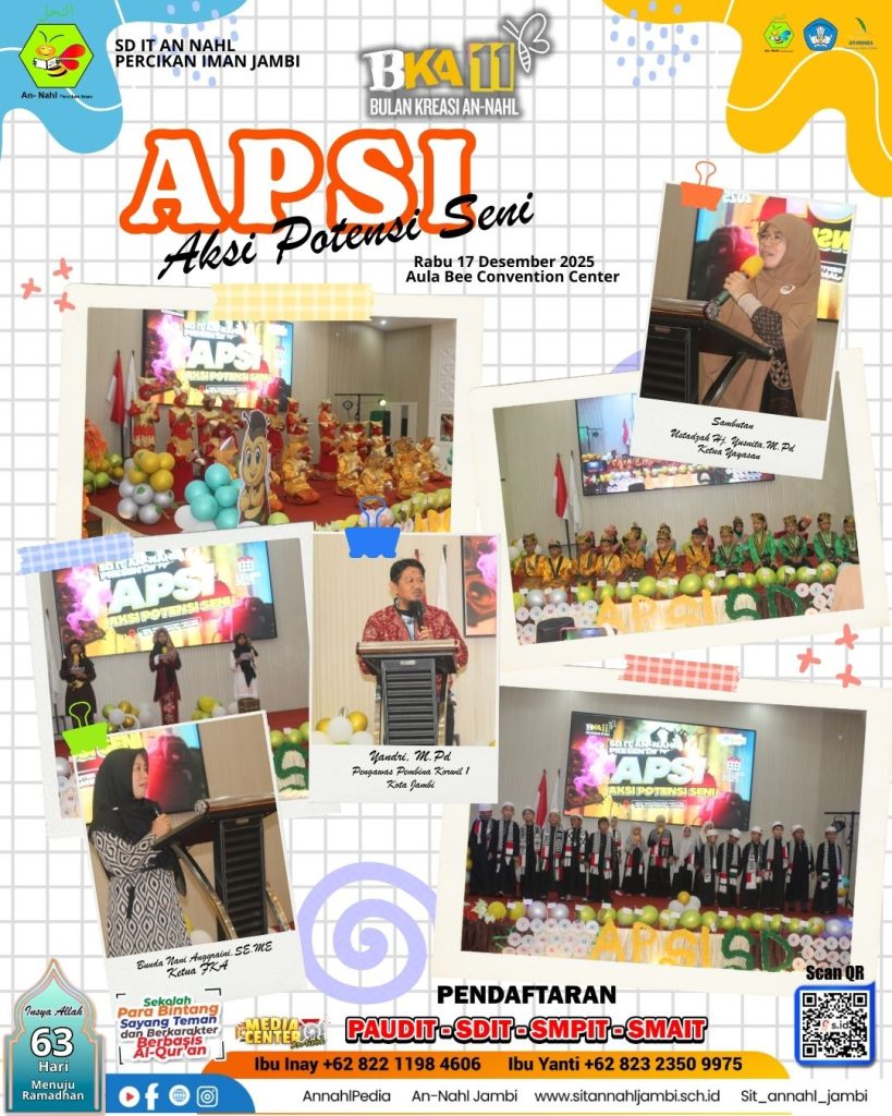 An-Nahl! Rabu, 17 Desember 2025 menjadi saksi ledakan kreativitas tanpa batas dari para Ananda hebat SD IT An-Nahl Percikan Iman Jambi! Perhelatan APSI (Aksi Potensi Seni) dalam balutan BKA 11 (Bulan Kreasi An-Nahl) sukses besar dengan atmosfer yang luar biasa Read More …